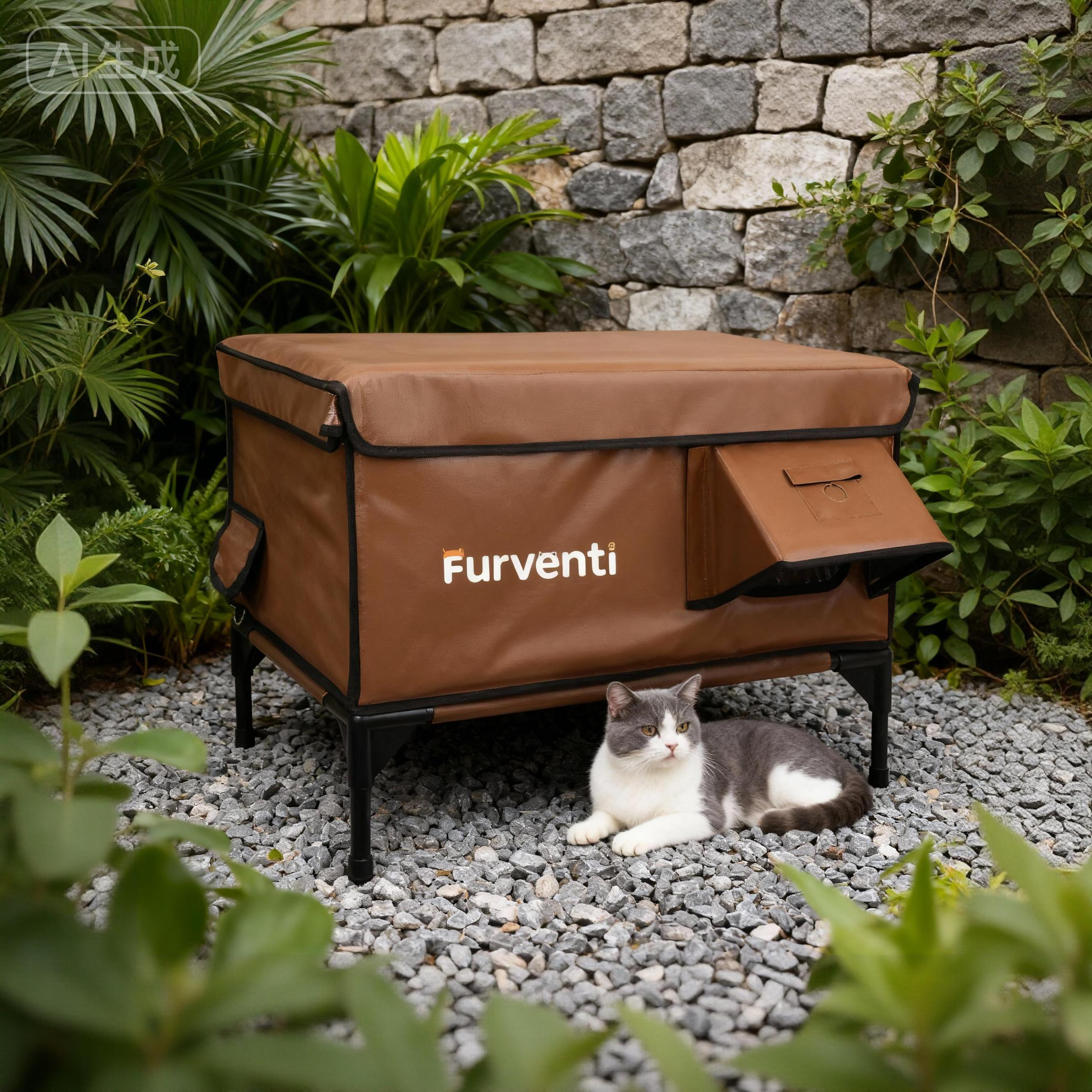 Furventi Cold-Resistant Heated Outdoor Cat House Brown
