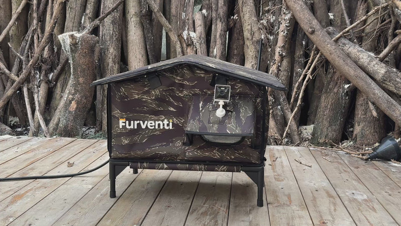 Furventi Flagship Outdoor Cat House is constructed with thicker, more resilient materials to minimize heat loss and provide superior cold protection, keeping the interior warm and dry even in harsh winter conditions. The durable, lightweight material resists water absorption and warping, and the camouflage color enhances concealment in the outdoors. The Flagship Cat House is guaranteed to last, providing a safe and comfortable shelter for your cat.