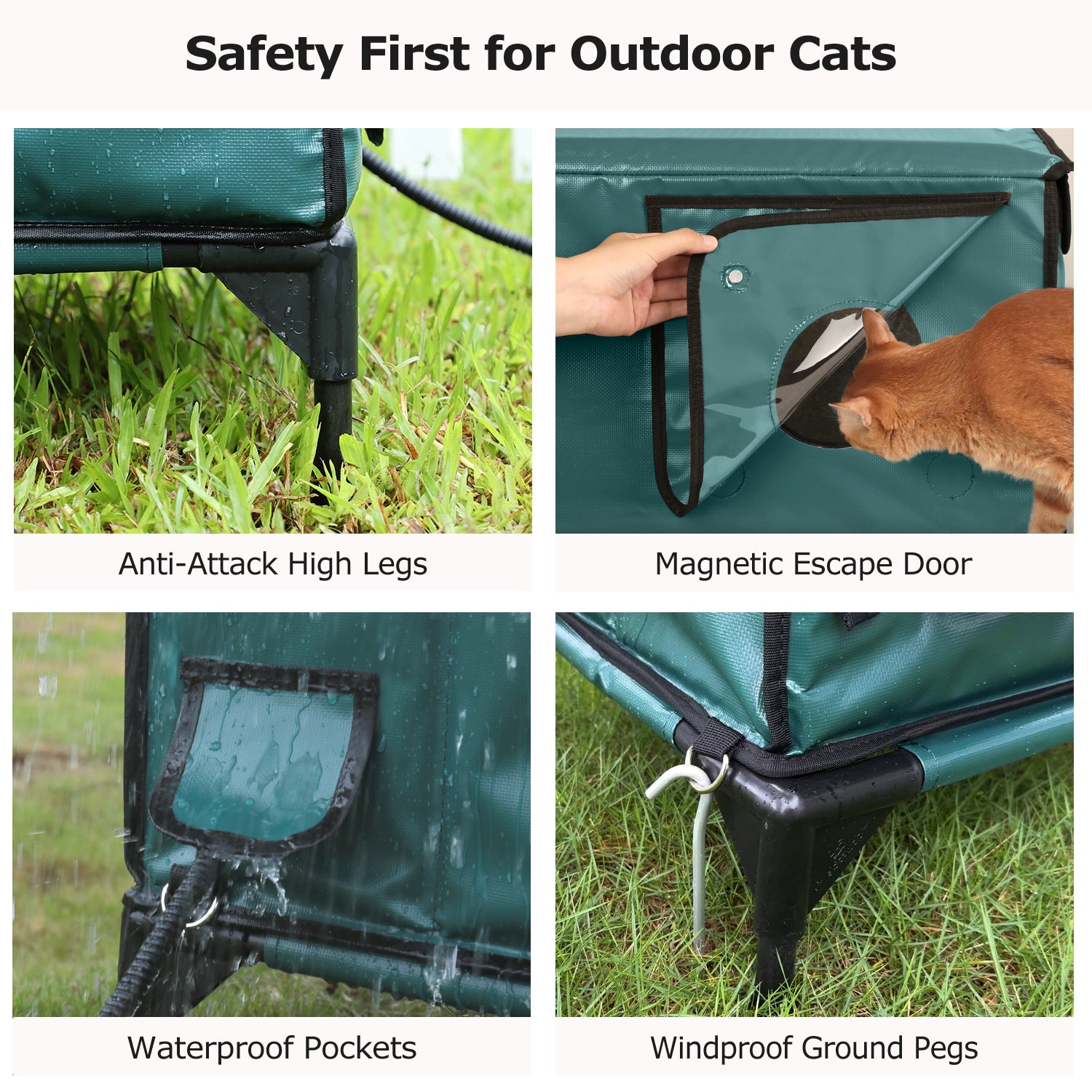 Furventi High Legs Outdoor Cat House Dark Green Product Features 1 & Outdoor Stray Heated Cat House