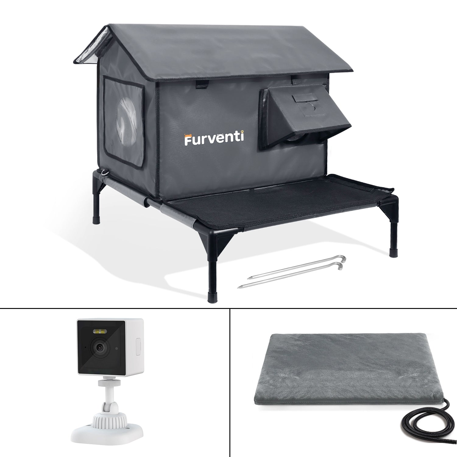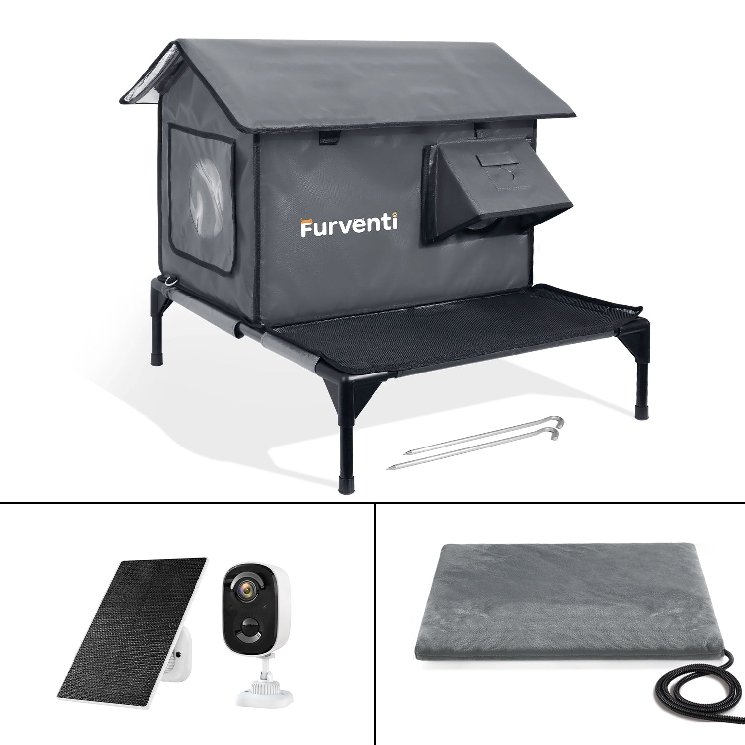 furventi Windproof ground nails & Outdoor Stray Heated Cat House
