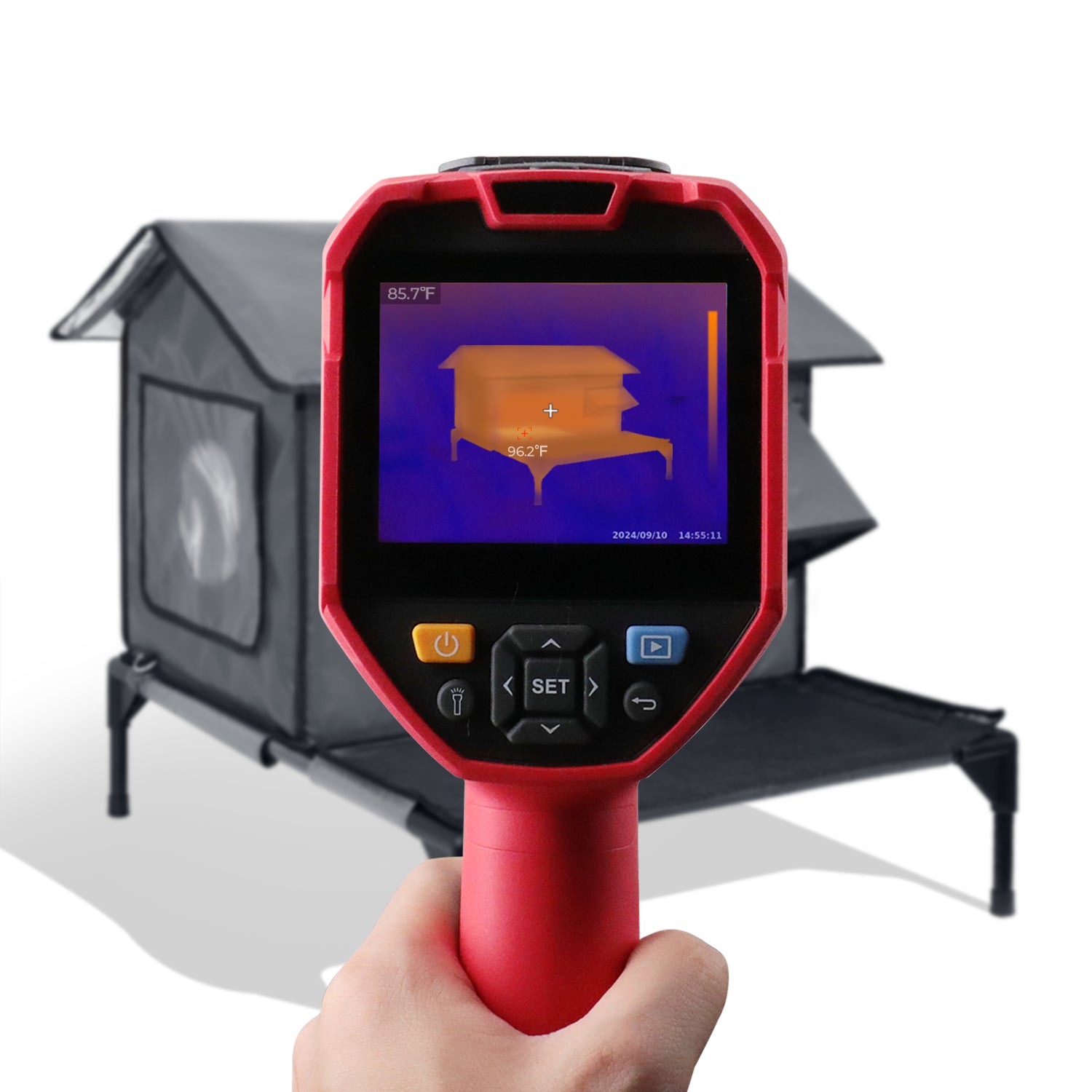 The elevated base keeps the shelter off the ground, blocking moisture and cold from the soil.