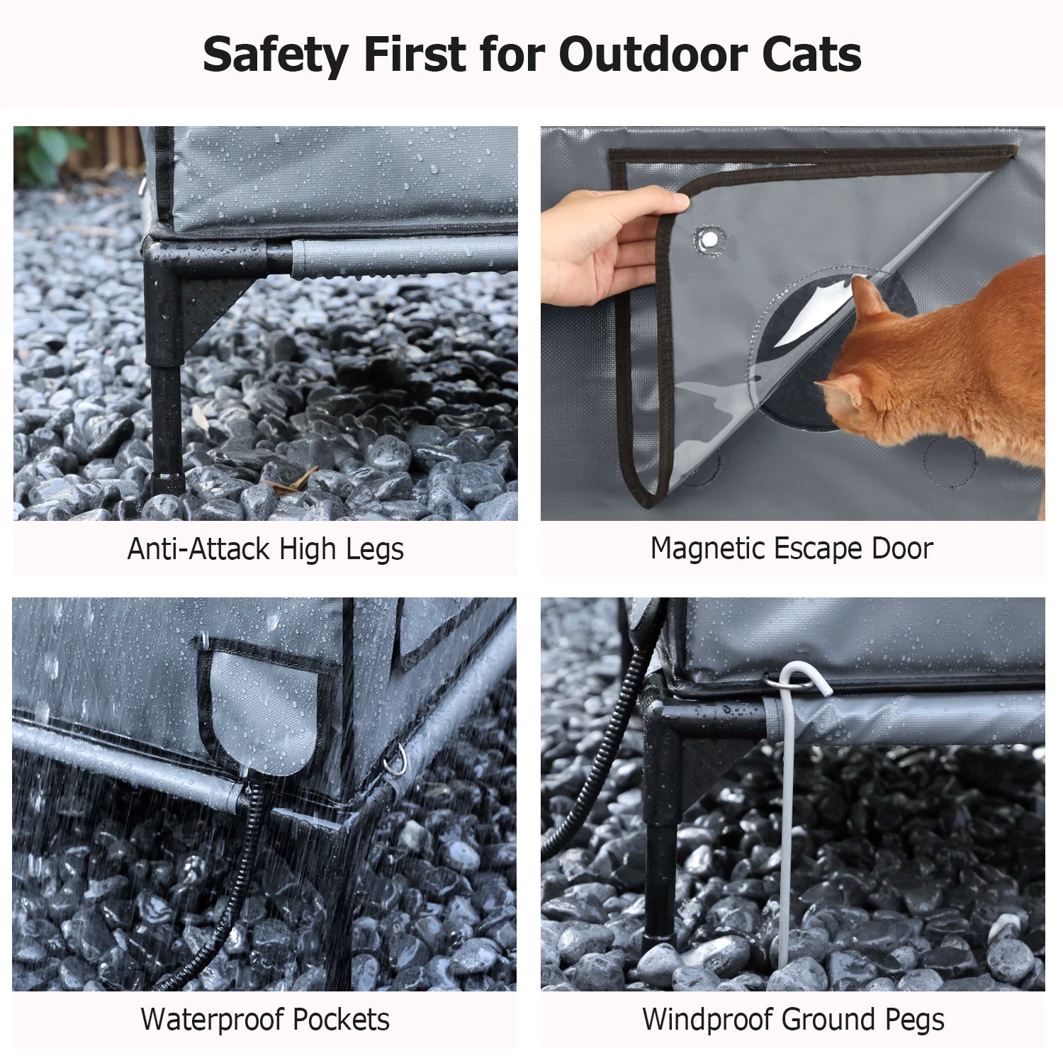 Features a rear safety escape door that allows cats to exit freely when threatened by predators.